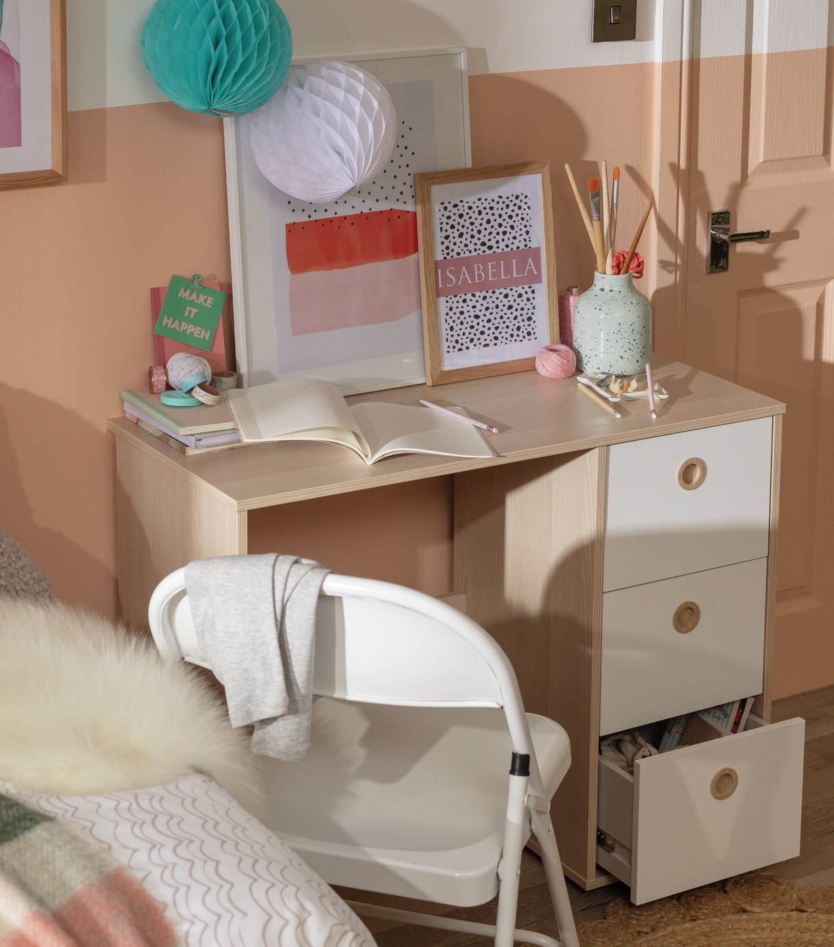 Argos Home Pepper 2 Drawer Pedestal Desk - Oak Effect | eBay